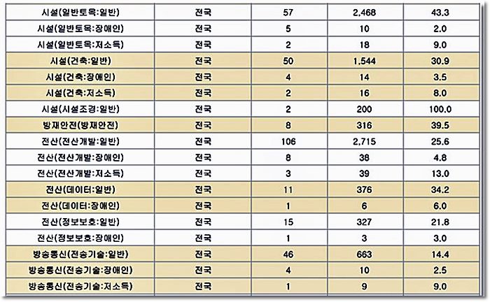 그러다 보니 선발인원 4,330며에 접수인원 105,31명으로 경쟁률 평균은 24.3대이었죠.